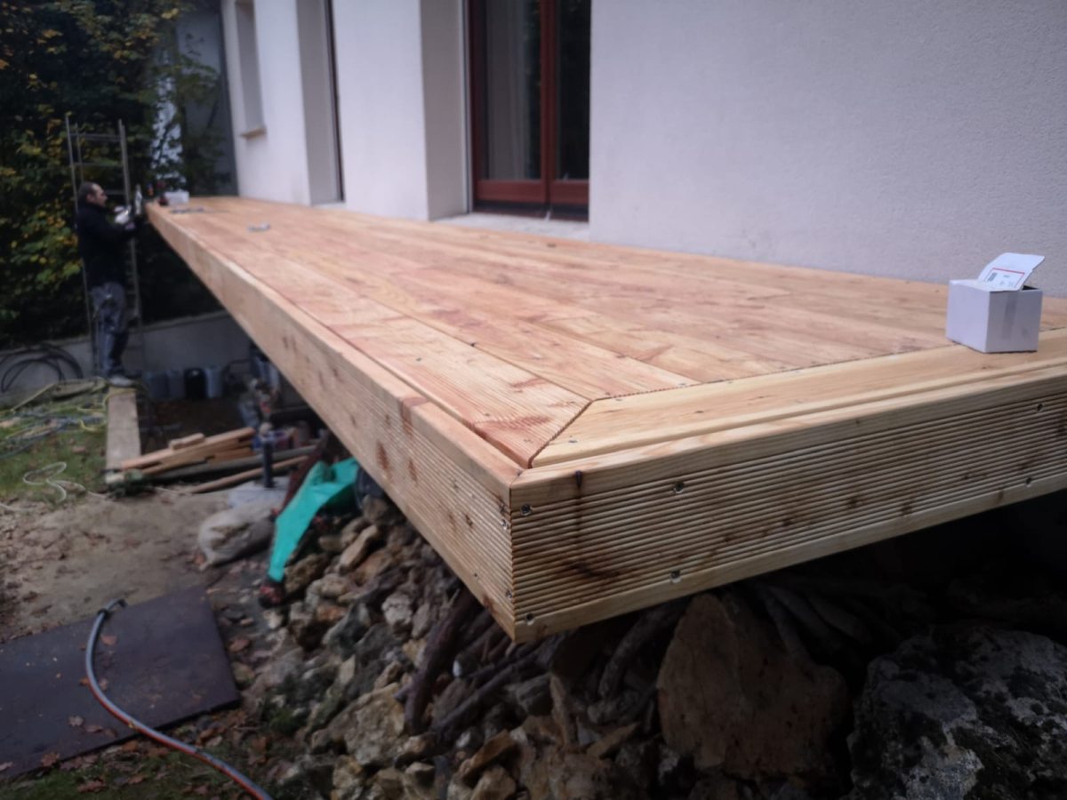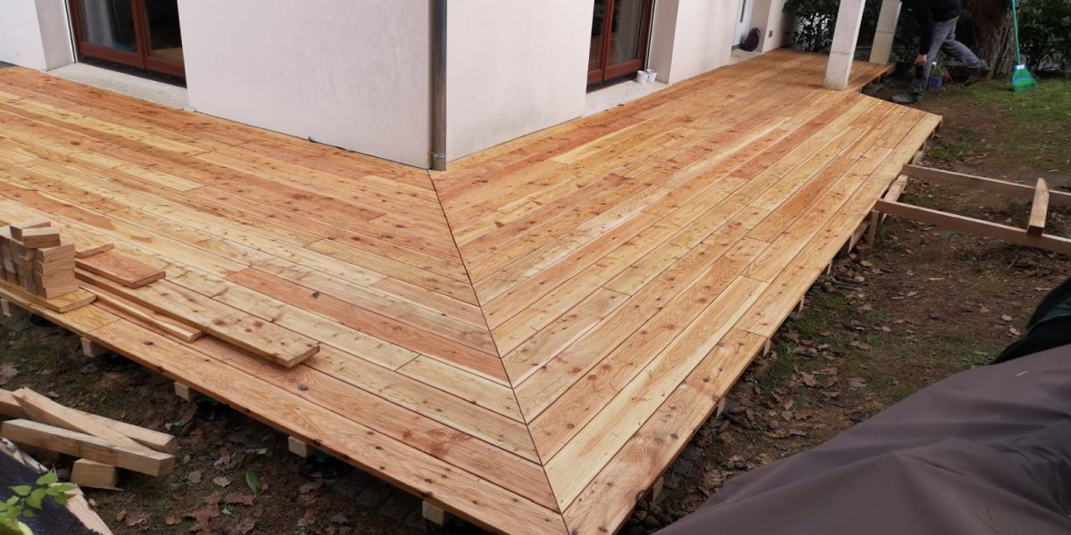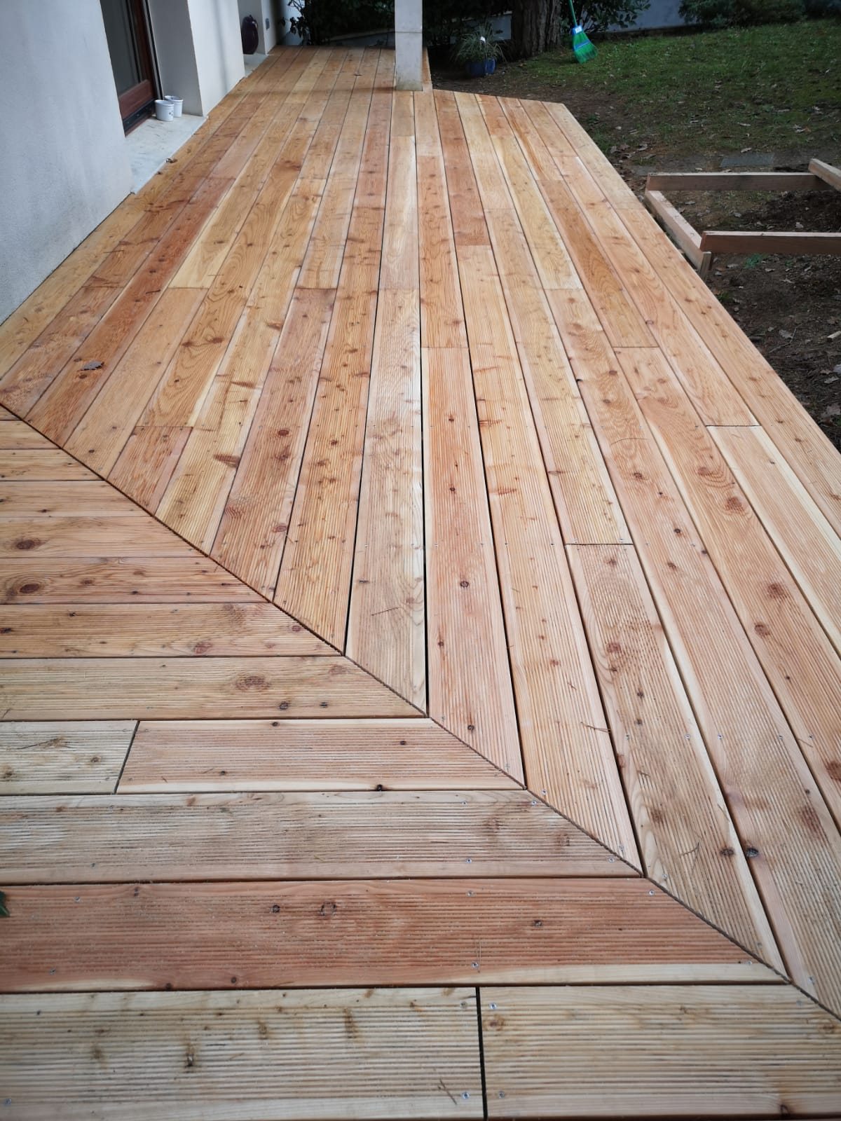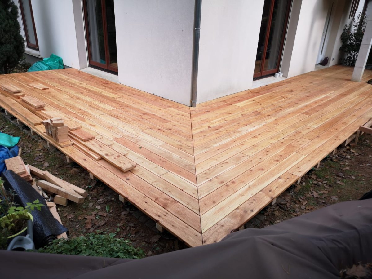 Wir produzieren Terrassendielen aus Lärche und Fichte. Wir bieten glatte und geriffelte Dielen an. Wir produzieren Holzelemente bis zu einer Länge von 5 Metern, einer Dicke von 28 mm und einer Breite von 15 Zentimetern.