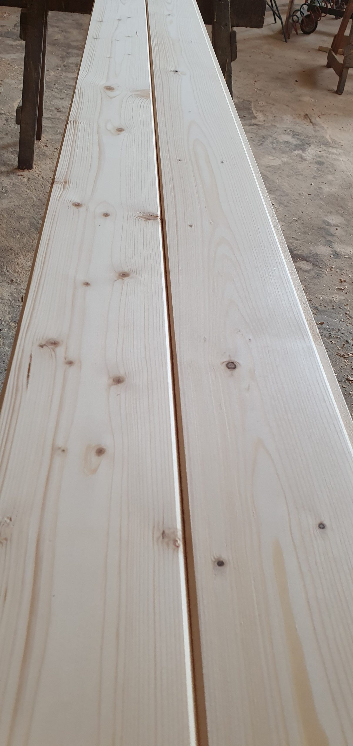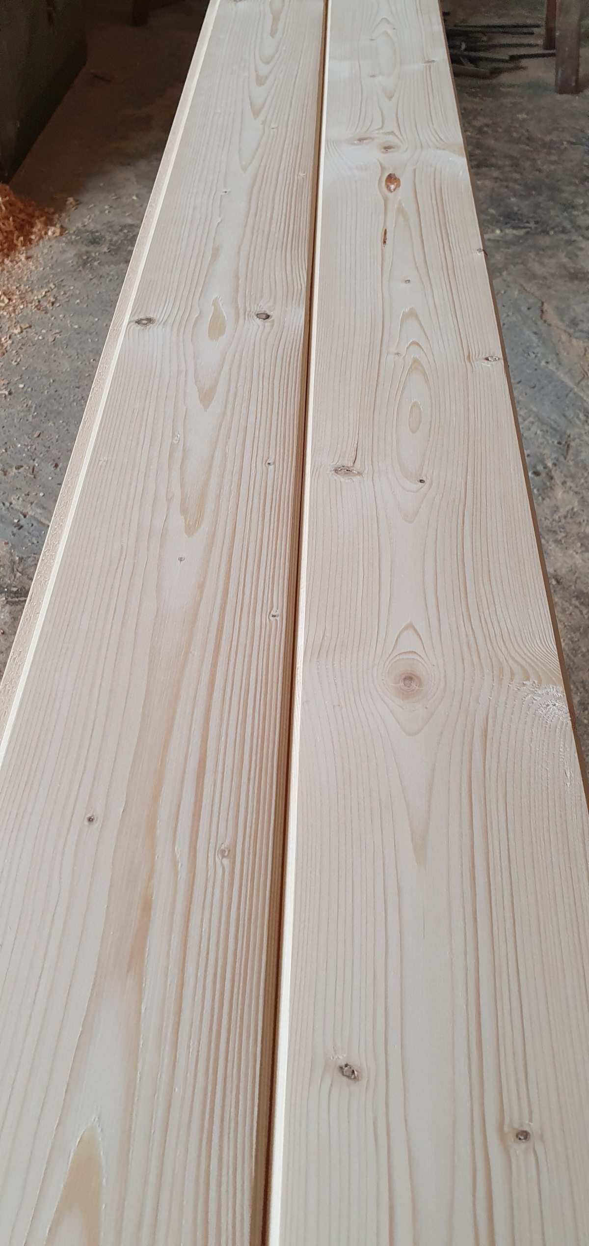 Die Fassadenbretter stellen wir aus Fichtenholz her. Wir bieten dieses Produkt in Längen bis zu 5 Metern, Breiten bis zu 14 cm und einer Dicke von 17 mm an.